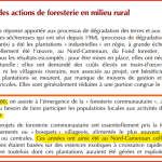 Au Cameroun, le début des années 80 marque l’implication des populations par le pouvoir public dans le reboisement à travers la foresterie communautaire, comme réponse aux processus de dégradation des terres et aux pénuries de bois de feu, aggravée par les sécheresses que le pays a connu en 1968. Ces projets prennent la forme de plantations d’arbres, en boisements ou « bosquets » villageois, alimentés le plus souvent par des pépinières gouvernementales ou centrales dans les années 80-85.