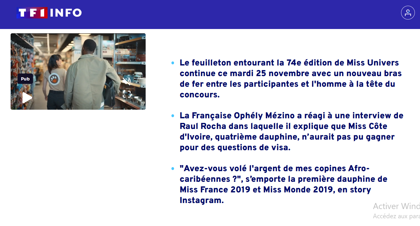 Un extrait de l’interview de Raul Rocha Cantu, président de Miss Univers, accordée à un célèbre média mexicain a été partagé sur Facebook le 24 octobre 2025. Selon la traduction française de cette interview, Raul Rocha aurait déclaré que la candidate ivoirienne « Olivia Yacé n’a pas gagné Miss Univers parce qu’elle vient de la Côte d’Ivoire et qu’elle doit demander un visa pour plus de 175 pays « . Des propos confirmés dans cet autre article publié par la télévision française TF1.