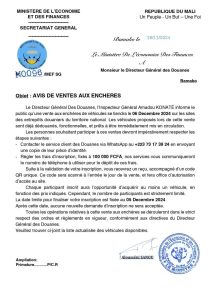 Un post publié récemment sur Facebook par une page dénommée Infos douane malienne annonçait un « avis de vente aux enchères » de voitures par les Douanes maliennes.