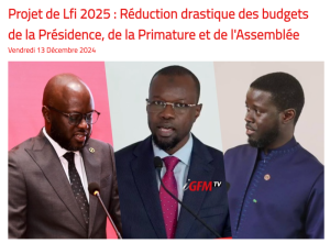 Le projet de budget du Sénégal pour l’année 2025 est estimé à 6 395,1 milliards XAF contre 7 003,6 milliards XAF en 2024, soit une baisse de 8,68% XAF, selon la loi des finances 2025 soumise le 14 décembre aux députés de l’Assemblée nationale sénégalaise. Ce qui ne peut pas être considéré comme une « baisse drastique » de l’ensemble des budgets de ces trois institutions publiques du Sénégal.