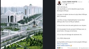 S’agissant des autres affirmations contenues dans ce post, il faut noter que les Seychelles sont la nation la plus prospère d’Afrique subsaharienne, avec 121 355 habitants dont les trois quarts vivent sur l’île principale de Mahé. Selon la Banque mondiale, les Seychelles ont le produit intérieur brut (PIB) par habitant le plus élevé d’Afrique, à 16,7 milliards de dollars en 2023. Le pays occupe toutefois la seconde place sur le continent après l’Ile Maurice et devant l’Algérie, selon le rapport 2024 de Hello Safe Index.