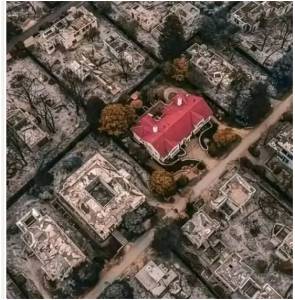 Le 19 janvier 2025, une publication sur LinkedIn faite par Guelor Ibara Ngatse , republiée plus de quarante fois et ayant suscité plusieurs commentaires divers, présentait une image d’une maison intacte entourée de décombres calcinés, suggérant un « miracle au milieu des flammes » après les incendies survenus en Californie aux USA. Plusieurs publications du genre ont envahi également Meta, ancien Facebook, et plusieurs autres plateformes numériques.