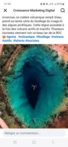 « Goma,RDC , Nord-Kivu, Le lac Vert, à plus de 1500m d’altitude, au centre d’un volcan éteint près de l’ouest de Goma . Ce cratère volcanique rempli d’eau, prend sa teinte verte du feuillage du rivage et des algues prolifiques. Cette région possède à la fois des volcans actifs et inactifs. Plusieurs touristes viennent voir ce beau lac de la RDC. », indique la légende de la publication qui a recueilli des likes, partages et commentaires.