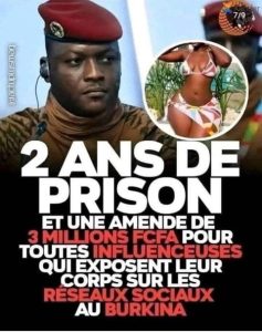 Depuis quelques jours, une multitude de publications sur les réseaux sociaux et certains sites en ligne, prétendent que le gouvernement burkinabè aurait adopté une loi qui condamne les influenceuses qui exposent leurs corps sur les réseaux sociaux à une peine de prison de deux ans et une amende de trois millions de francs XAF..