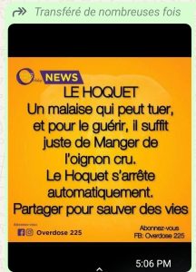 Dans cet article de Ouestaf publié en 2021 et dans lequel le même sujet a été abordé, il n’est nulle part mentionné que l’oignon est thérapeutique en cas de hoquet.
