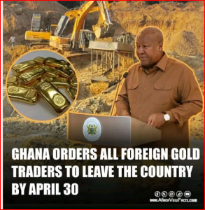 Contrairement à ce que laisse entendre le post, le gouvernement ghanéen n’a pas ordonné l’expulsion des commerçants étrangers. Il s’agit plutôt d’une réforme structurelle du marché local de l’or artisanal, annoncée officiellement par le ministère des Finances ghanéen en avril 2025.