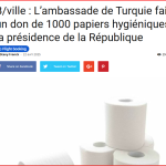 • Faux : L’ambassade de Turquie n’a jamais offert 1000 rouleaux de papier hygiénique à la présidence congolaise