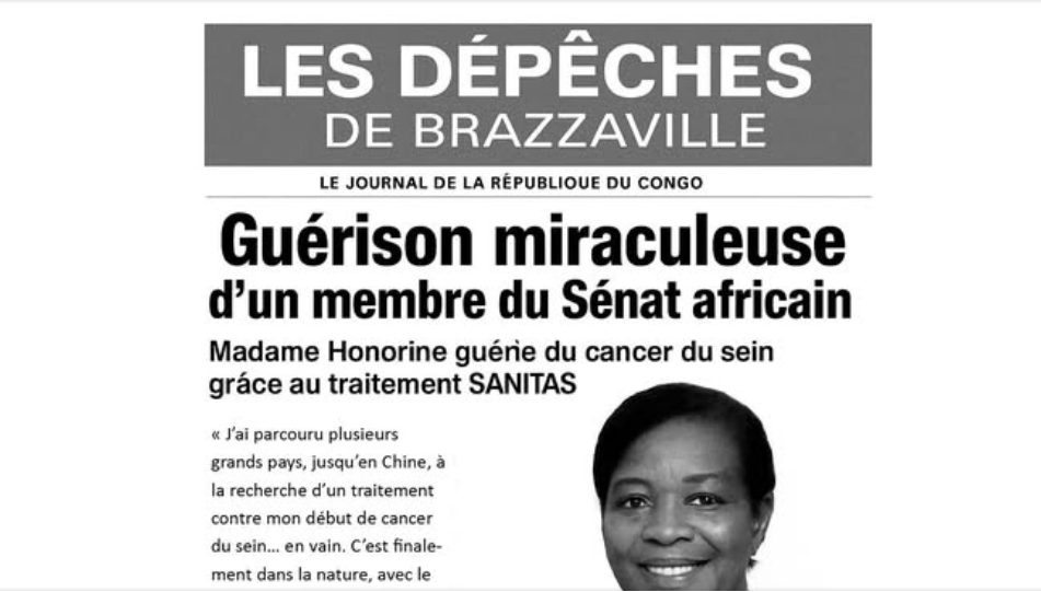 jamais publié d’article sur une guérison miraculeuse grâce aux produits Sanitas. - Le journal a démenti cette information auprès de Fact-Check Congo.