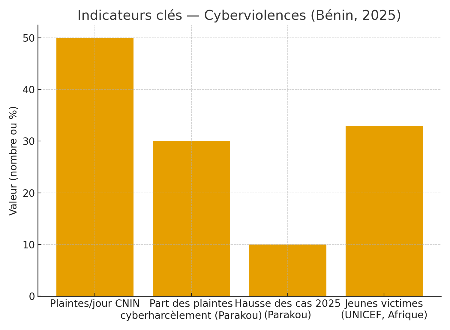 Le Code du numérique béninois punit le harcèlement électronique d’un à deux ans de prison, et d’amendes jusqu’à 10 millions FCFA. Les peines sont aggravées si la victime est mineure ou