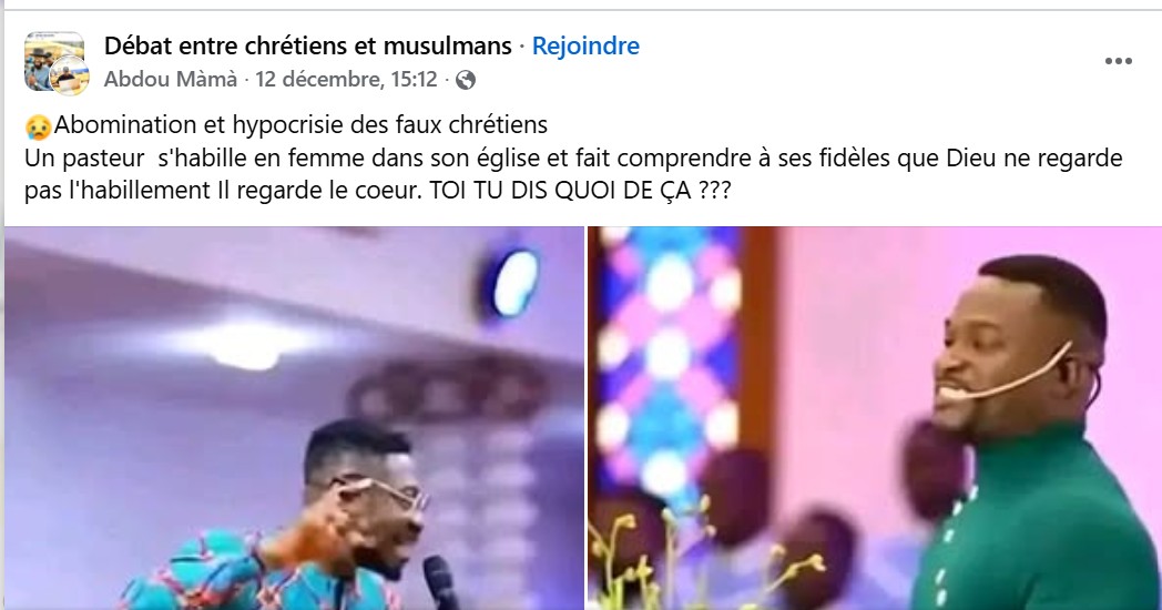 un pasteur s’habille en femme dans une église. (1, 2, 3). Dans les publications analysées,