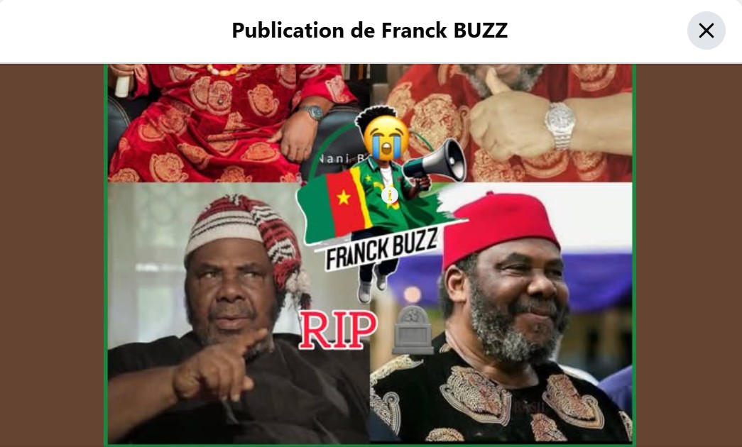 Une publication largement partagée sur Facebook et les autres plateformes sociales ( 1, 2, 3) affirme que l’acteur légendaire de Nollywood, Pete (ou Peter) Edochie, surnommé « Vieux Goliath » en milieu francophone, serait décédé à l’âge de 78 ans, après une hospitalisation la veille. Le message ajoute que son fils aurait confirmé la nouvelle sur Instagram.