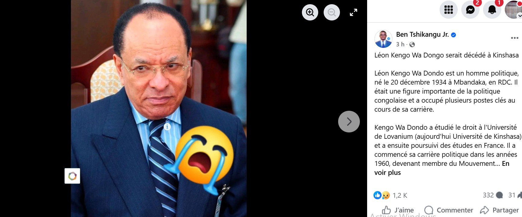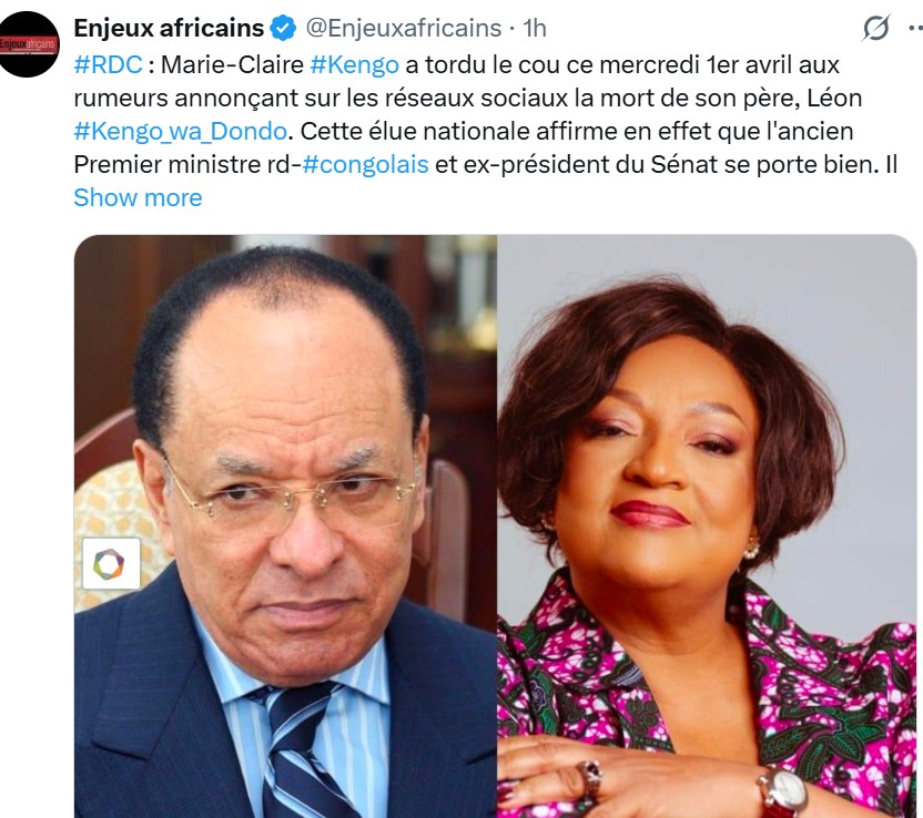Pas toujours. On n’annonce pas la mort de quelqu’un « juste pour rire ». Tel le cas avec l’annonce du décès de Léon Kengo wa Dondo, ancien premier ministre de la République Démocratique du Congo, aussitôt démentie par sa fille, Marie-Claire Kengo, députée nationale de la RDC, comme publié sur le site web de l’Agence Congolaise de Presse, ACP, et sur X par le média Les Enjeux africains