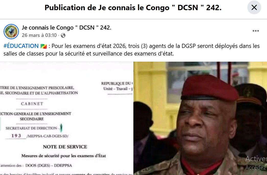 Il est vrai que le gouvernement congolais met en place plusieurs initiatives pour assurer le bon déroulement des examens d’État. Cependant, les agents de la direction générale de la sécurité présidentielle n’ont pas été associé à ces initiatives contrairement à l’information relayée sur les réseaux sociaux. La note virale n’a jamais existé et a été démentie par le ministère en charge de l’organisation des examens d’Etat.